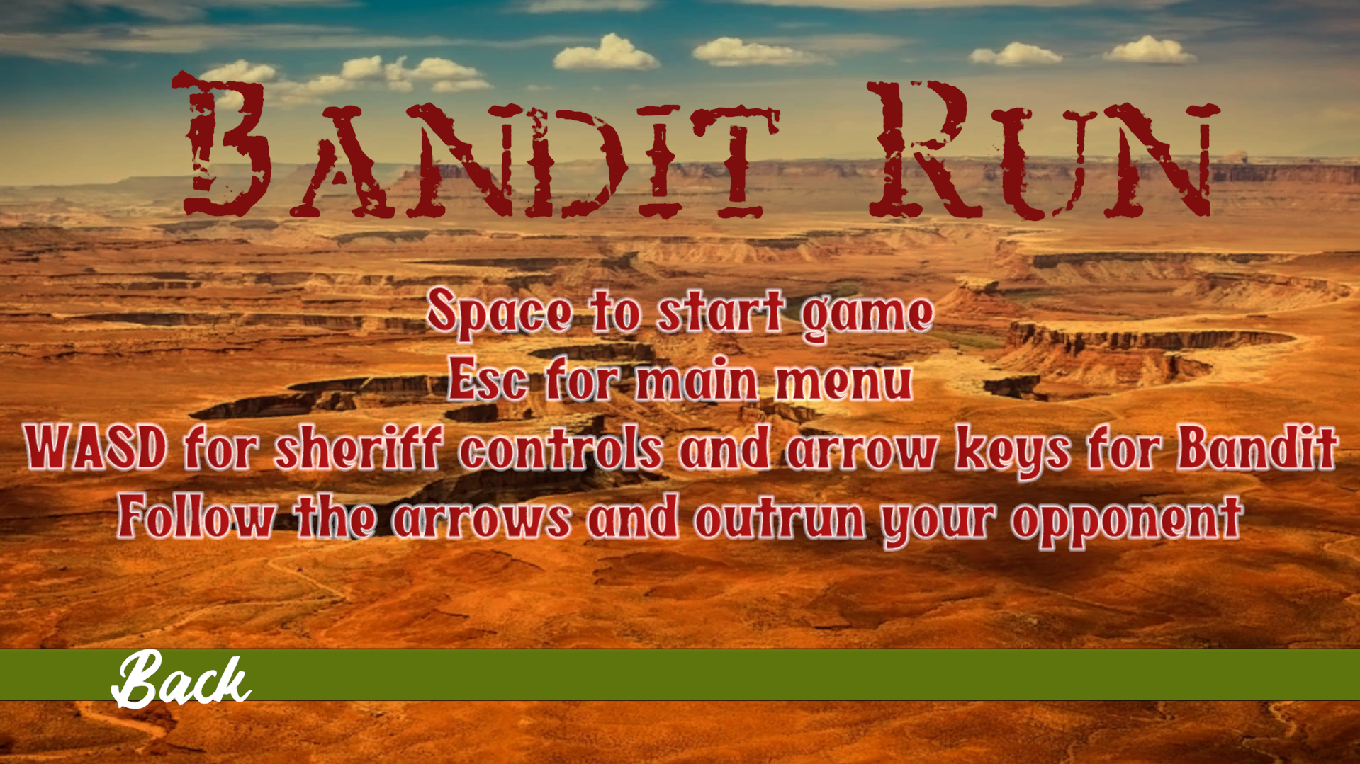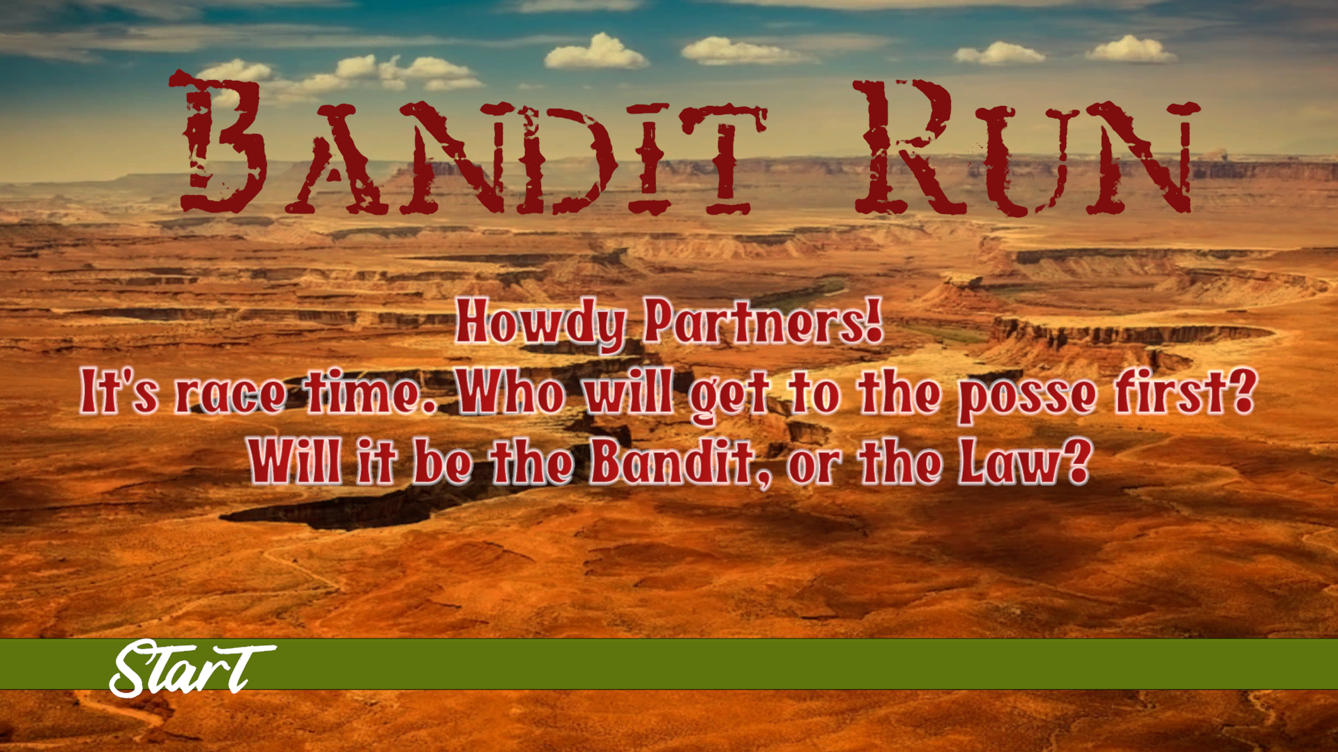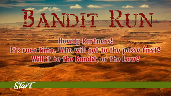 A two player, local co-op racing game, where the bandit and the sheriff battle to be the first to reach the safehouse located in the western rurales.